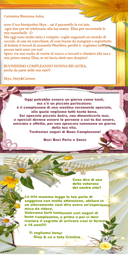 Io e i tuoi dolci nipoti vogliamo fare i più sinceri auguri di compleanno alla nonna più bella e brava del mondo.auguri!.. Non conosco il tuo desiderio ma ti confido il mio: Vorrei tanto essere come te. Le tue rughe raccontano una storia di quanto sia stata bella la tua vita finora e come sia ancora fantastica.. Che tu sia sempre al mio fianco perché sei la nonnina del mio cuore.